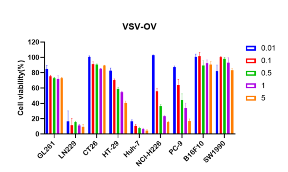 图1.VSV-OV在体外药效实验中对多种肿瘤细胞具有抑制活性